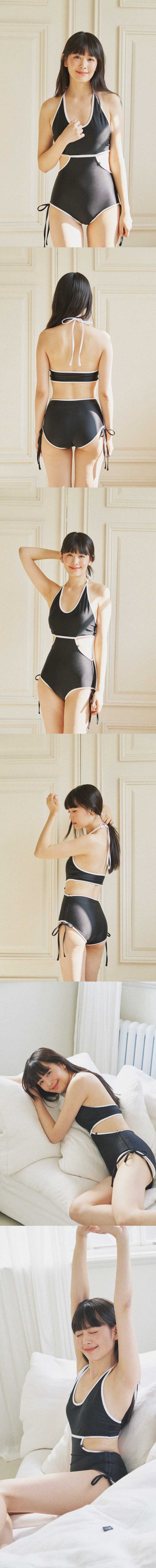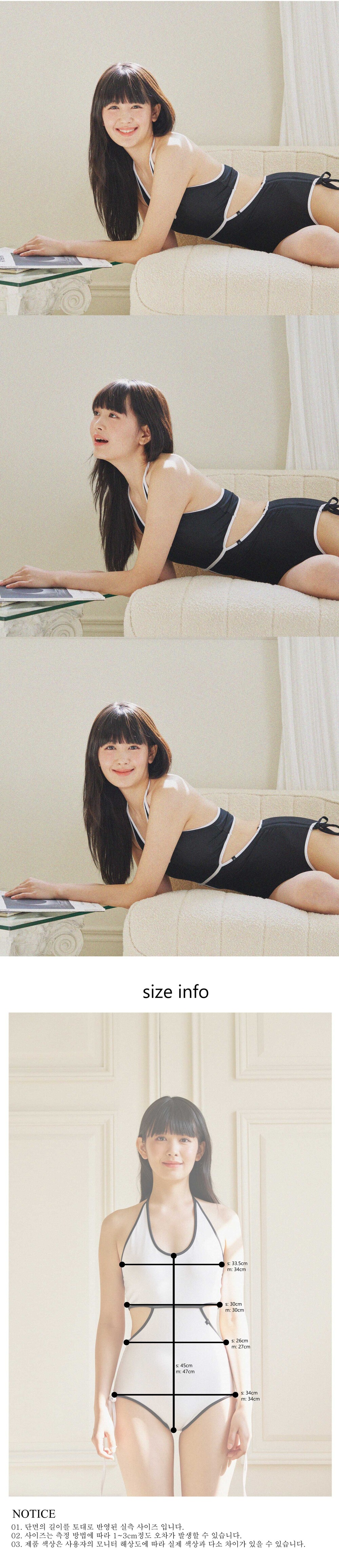 시크한 무드의 컷아웃 디테일과 눈에 띄는 배색 조합으로 개성 있는 디자인의 모노키니입니다. 폴웨어, 스윔웨어로 착용 가능하며 로맨틱 볼레로와 함께 연출하여 컷아웃 모노키니의 시크함을 더욱 부각시켜줍니다.
